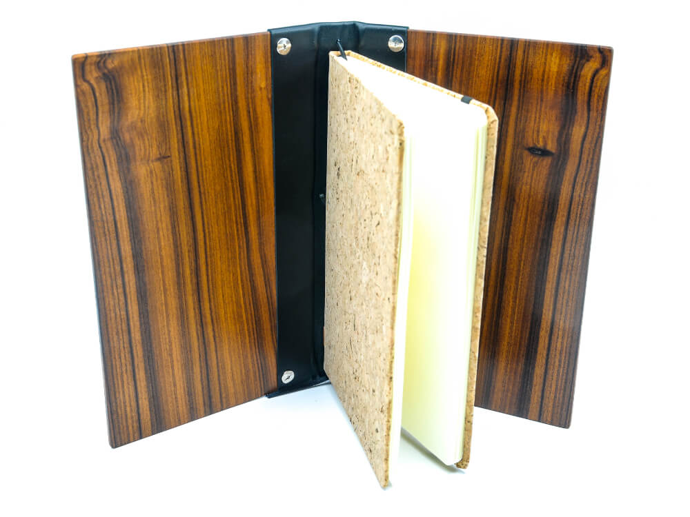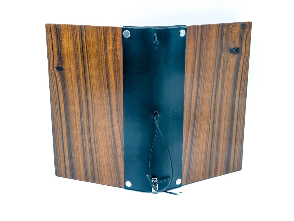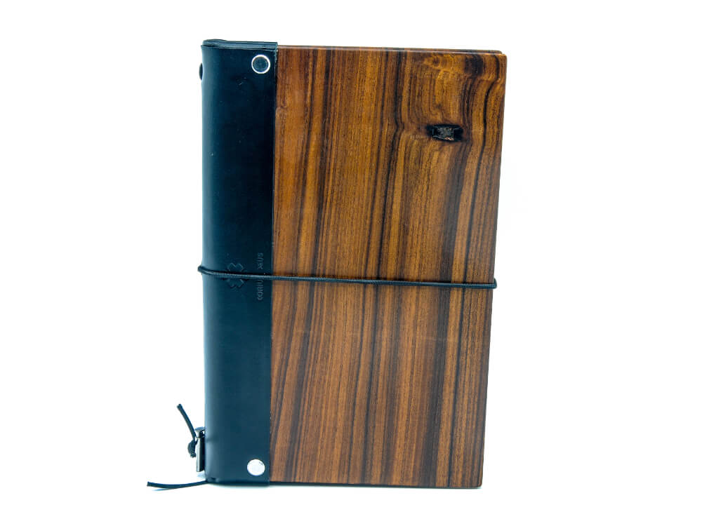 Esta Agenda en madera de Pao Ferro (también llamado Granadillo del Brasil) la hemos realizado con al menos 5 sesiones de lijado por pieza sobre las que hemos aplicado ceras y aceites naturales para su perfecta conservación. Es una madera que procede de bosques primarios y plantaciones eco sostenibles de Brasil.