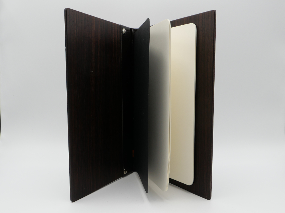 Esta Agenda de madera de Palosanto de la india cuenta con al menos 5 sesiones de lijado por piezas y a mano, sobre las que hemos aplicado ceras y aceites para su perfecta conservación.